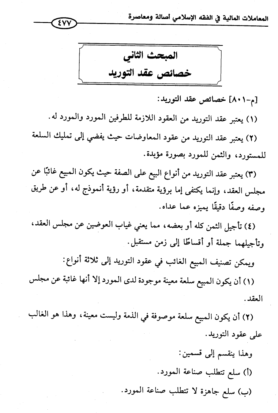 (٢) أن يكون المبيع سلعة موصوفة في الذمة وليست معينة، وهذا هو الغالب على عقود التوريد.