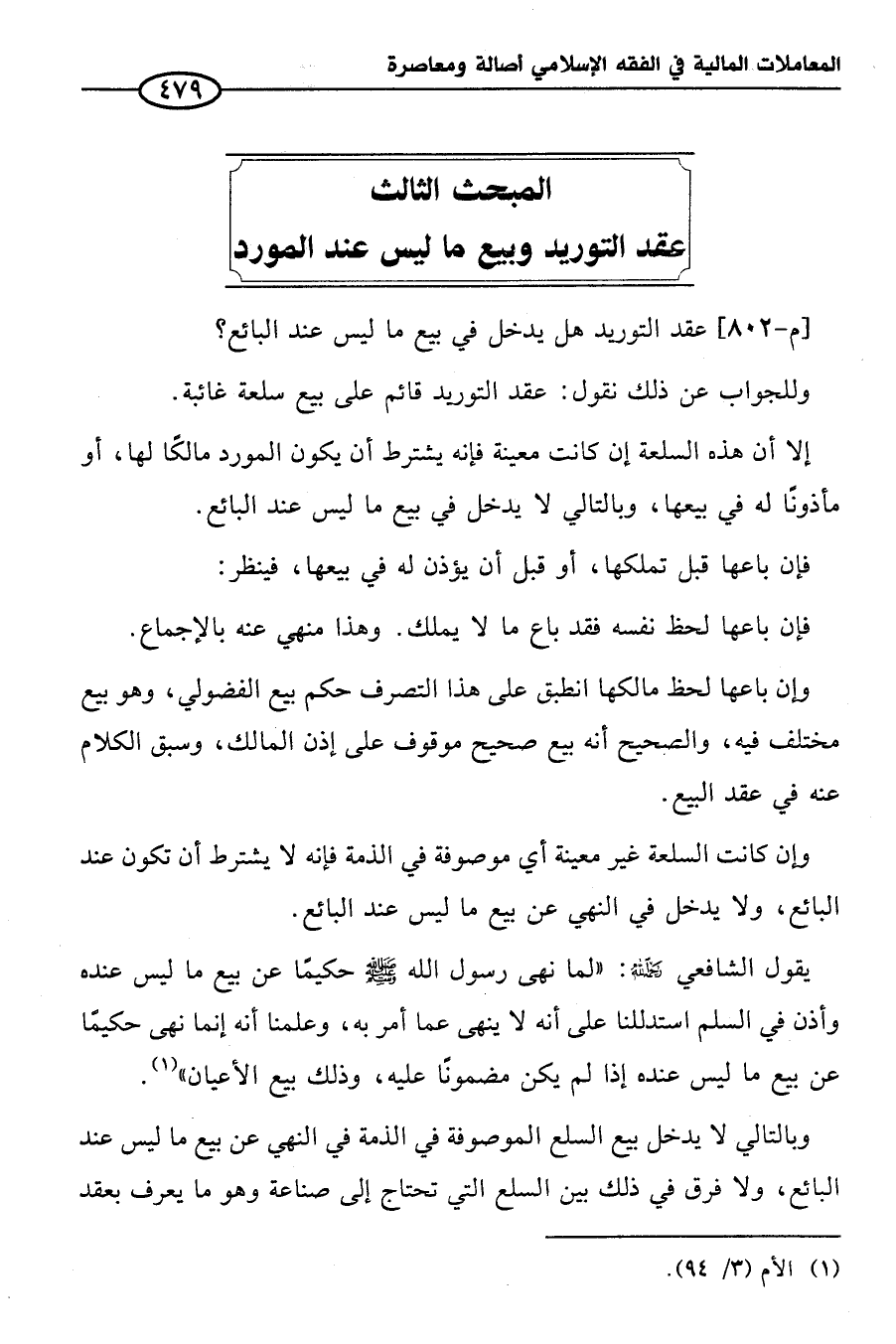 المبحث الثالث عقد التوريد وبيع ما ليس عند المورد