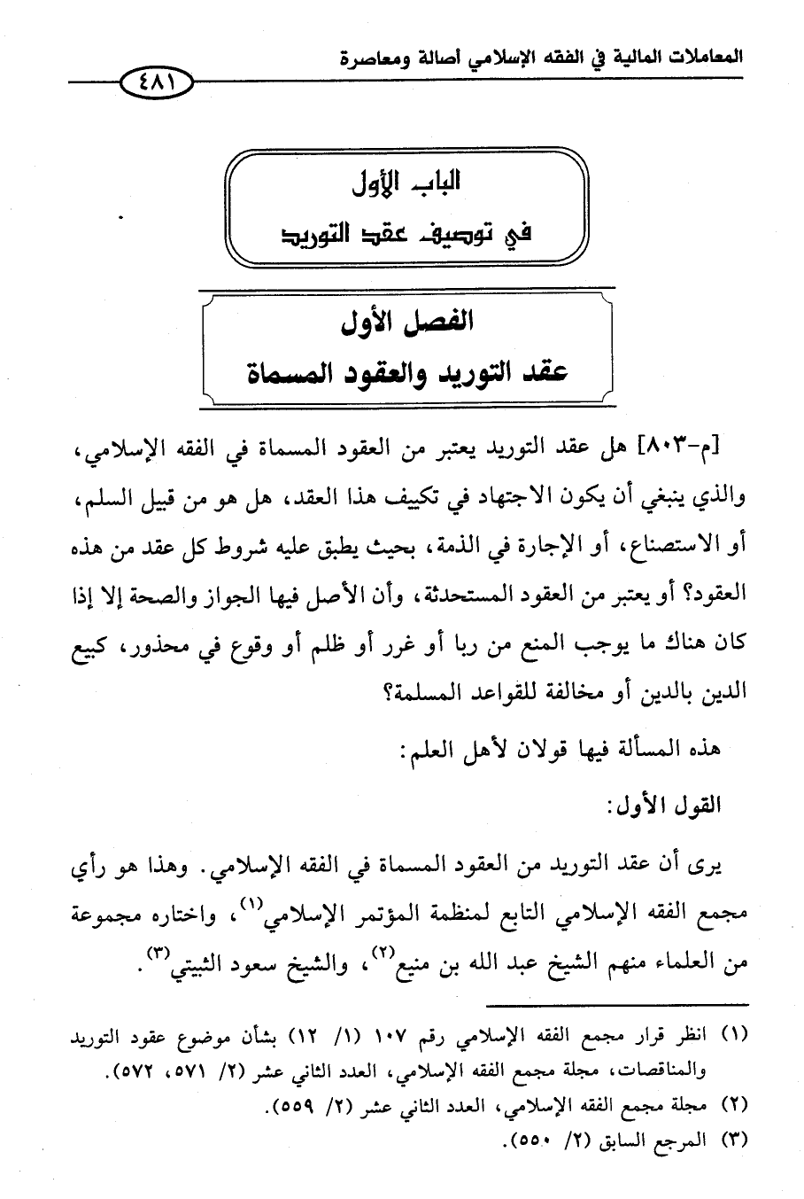 (¬١) انظر قرار مجمع الفقه الإِسلامي رقم ١٠٧ (١/ ١٢) بشأن موضوع عقود التوريد والمناقصات، مجلة مجمع الفقه الإِسلامي، العدد الثاني عشر (٢/ ٥٧١، ٥٧٢).