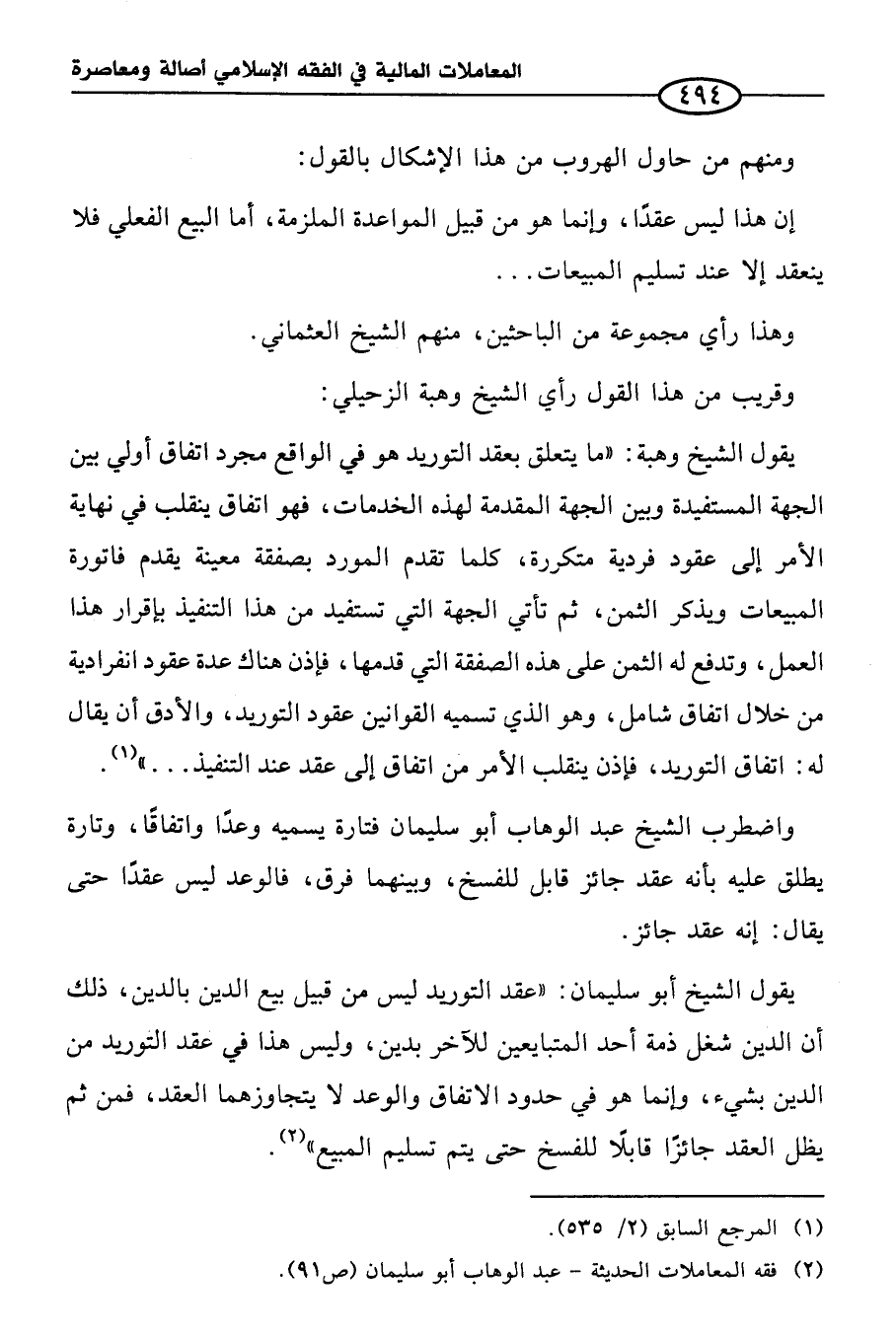 (¬٢) فقه المعاملات الحديثة - عبد الوهاب أبو سليمان (ص ٩١).