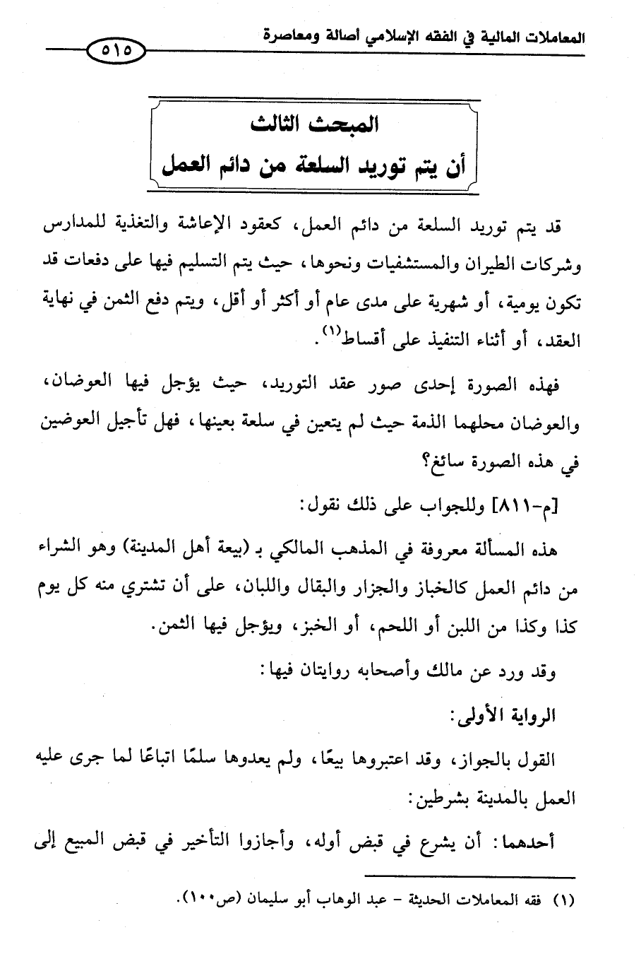 (¬١) فقه المعاملات الحديثة - عبد الوهاب أبو سليمان (ص ١٠٠).