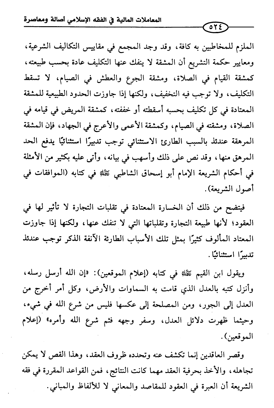 الملزم للمخاطبين به كافة، وقد وجد المجمع في مقاييس التكاليف الشرعية، ومعايير حكمة التشريع أن المشقة لا ينفك عنها التكليف عادة بحسب طبيعته، كمشقة القيام في الصلاة، ومشقة الجوع والعطش في الصيام، لا تسقط التكليف، ولا توجب فيه التخفيف، ولكنها إذا جاوزت الحدود الطبيعية للمشقة المعتادة في كل تكليف بحسبه أسقطته أو خففته، كمشقة المريض في قيامه في الصلاة، ومشقته في الصيام، وكمشقة الأعمى والأعرج في الجهاد، فإن المشقة المرهقة عندئذ بالسبب الطارئ الاستثنائي توجب تدبيرًا استثنائيًا يدفع الحد المرهق منها، وقد نص على ذلك وأسهب في بيانه، وأتى عليه بكثير من الأمثلة في أحكام الشريعة الإِمام أبو إسحاق الشاطبي رحمه الله في كتابه (الموافقات في أصول الشريعة).