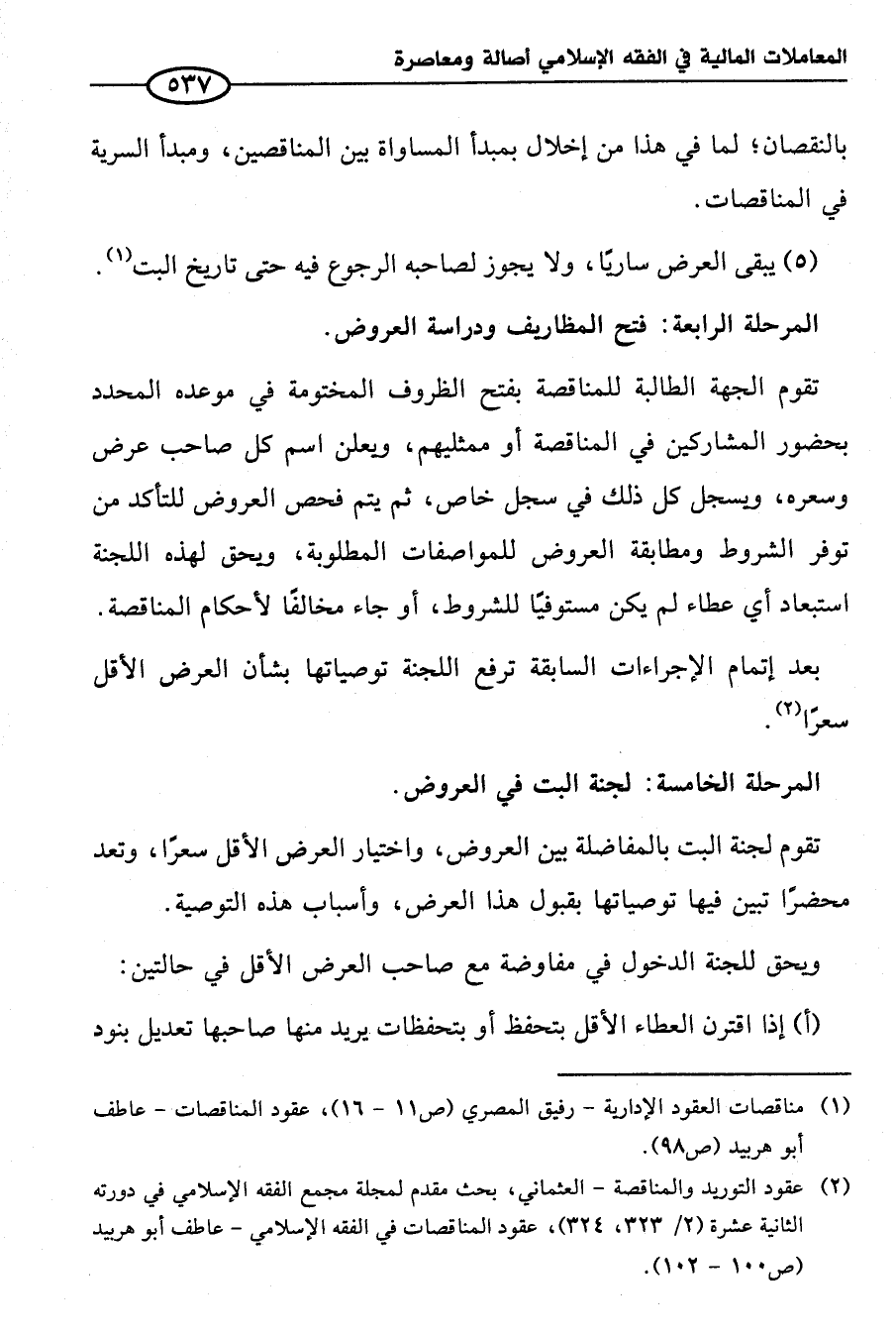(¬١) مناقصات العقود الإدارية - رفيق المصري (ص ١١ - ١٦)، عقود المناقصات - عاطف أبو هربيد (ص ٩٨).