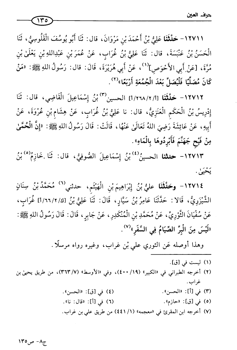 12714 - وحَدثنا علي بن إبراهيم بن الهيثم، حَدثني مُحمد بن سنان الشيزري، قالا: حَدثنا عامر بن سيار، قال: حَدثنا علي بن غراب، عن سفيان الثَّوري، عن مُحمد بن المنكدر، عن جابر، قال: قال رسول الله صَلى الله عَليه وسَلم: ليس من البر الصيام في السفر.
