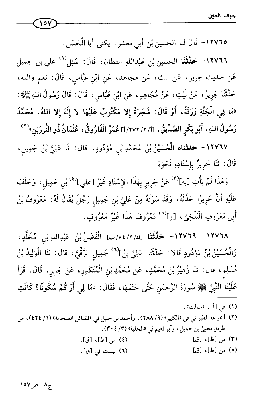 12767 - حَدثنا الحسين بن مُحمد بن مودود، قال: حَدثنا علي بن جميل، قال: حَدثنا جرير، بإسنادِه، نَحوه.