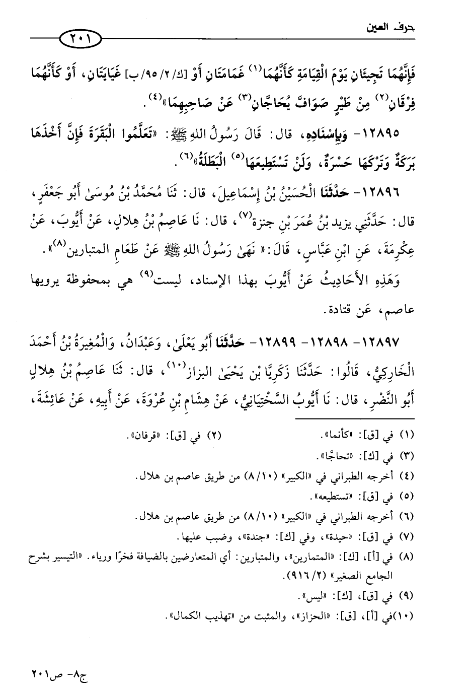 12895 - وبإسناده؛ قال: قال رسول الله صَلى الله عَليه وسَلم: تعلموا البقرة، فإن أخذها بركة، وتركها حسرة، ولن تستطيعها البطلة.