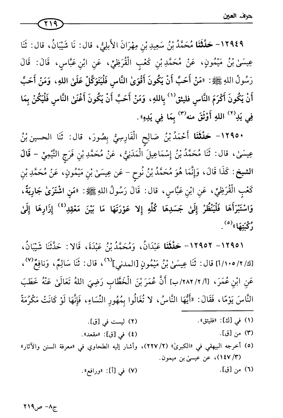 12950 - حَدثنا أحمد بن صالح الفارسي بصور، قال: حَدثنا الحسين بن عيسى، قال: حَدثنا مُحمد بن إسماعيل المدني، عن مُحمد بن فرج التيمي،- قال الشيخ: كذا قال، وإنما هو مُحمد بن نوح -، عن عيسى بن ميمون، عن مُحمد بن كعب القرظي، عن ابن عباس، قال: قال رسول الله صَلى الله عَليه وسَلم: من اشترى جارية واستبرأها، فلينظر إلى جسدها كله إلا عورتها، ما بين معقد إزارها إلى ركبتها.