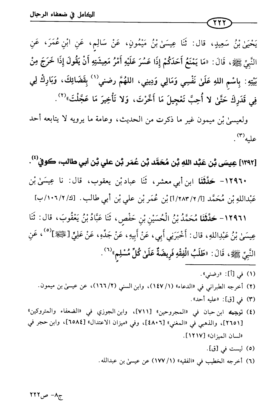 [1392] عيسى بن عَبد الله بن مُحمد بن عُمر بن علي بن أبي طالب، كوفي.