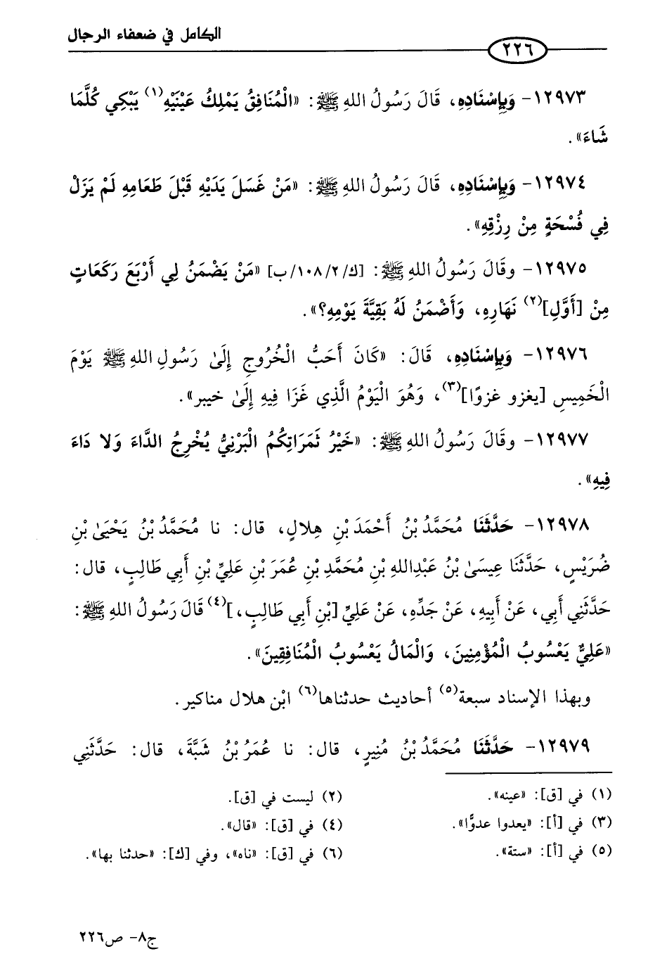 وبهذا الإسناد سبعة (1) أحاديث حدثناها ابن هلال، مناكير.