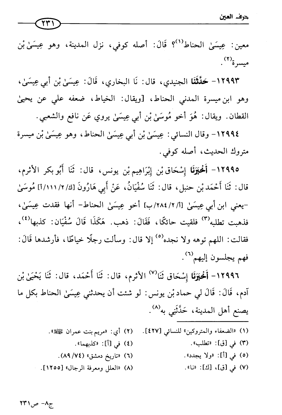 12996 - أخبرنا إسحاق، قال: حَدثنا الأثرم، قال: حَدثنا أحمد، قال: حَدثنا يَحيى بن آدم، قال: قال لي حماد بن يُونُس: لو شئت أن يحدثني عيسى الحناط بكل ما يصنع أهل المدينة، حَدَّثني به.