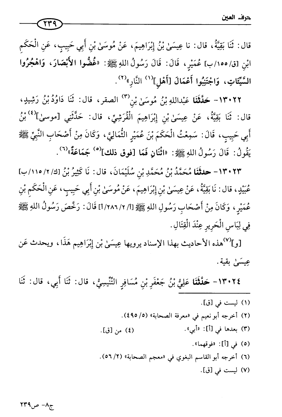 وهذه الأحاديث بهذا الإسناد، يرويها عيسى بن إبراهيم هذا، ويحدث عن عيسى بقية.