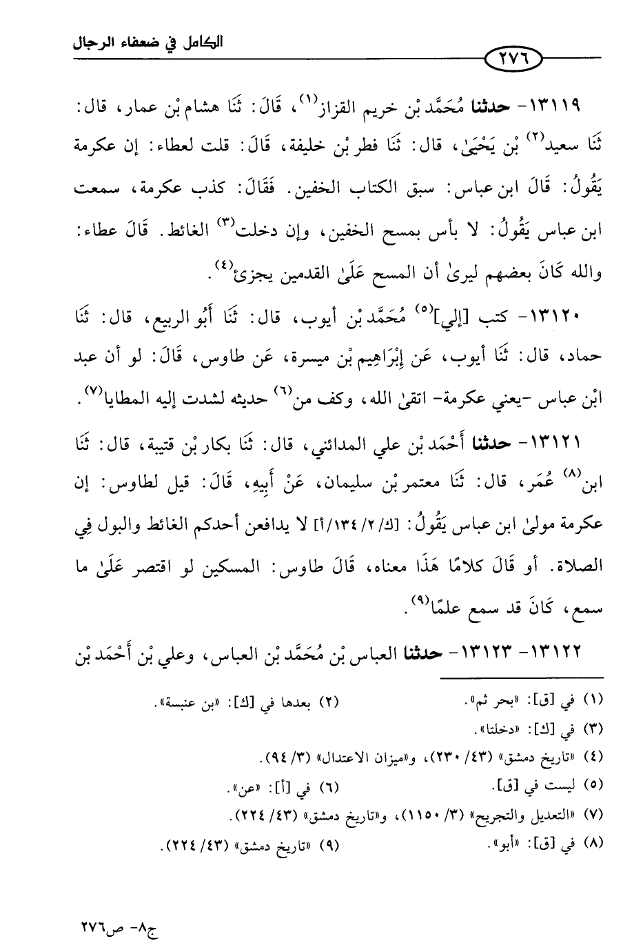 كتاب الكامل في ضعفاء الرجال لابن عدي - الرشد (اسم الجزء: 8)