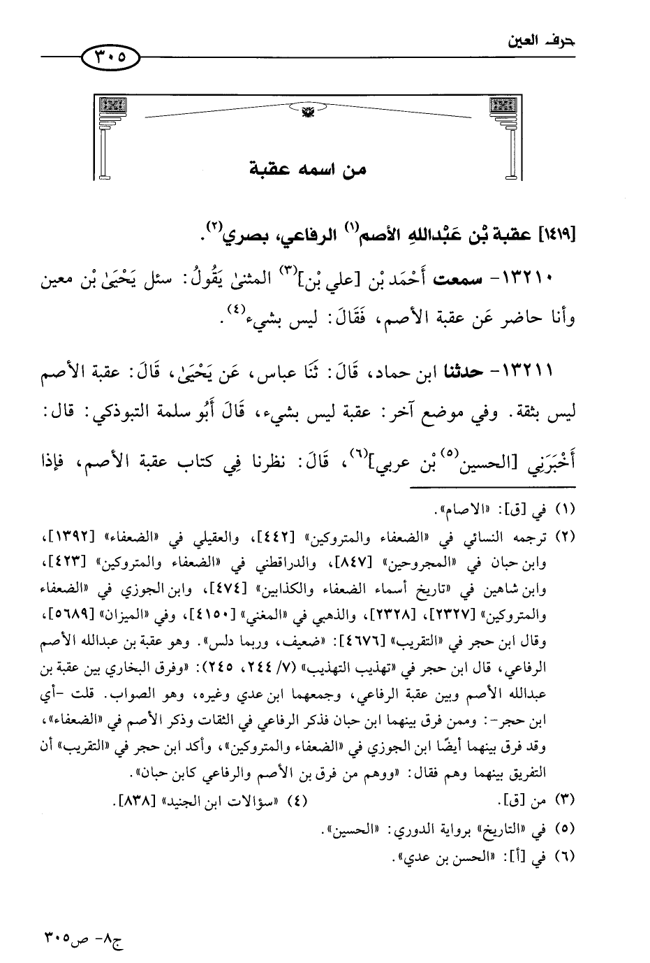 13211 - حَدثنا ابن حماد، قال: حَدثنا عباس، عن يَحيى، قال: عقبة الأصم ليس بثقة.