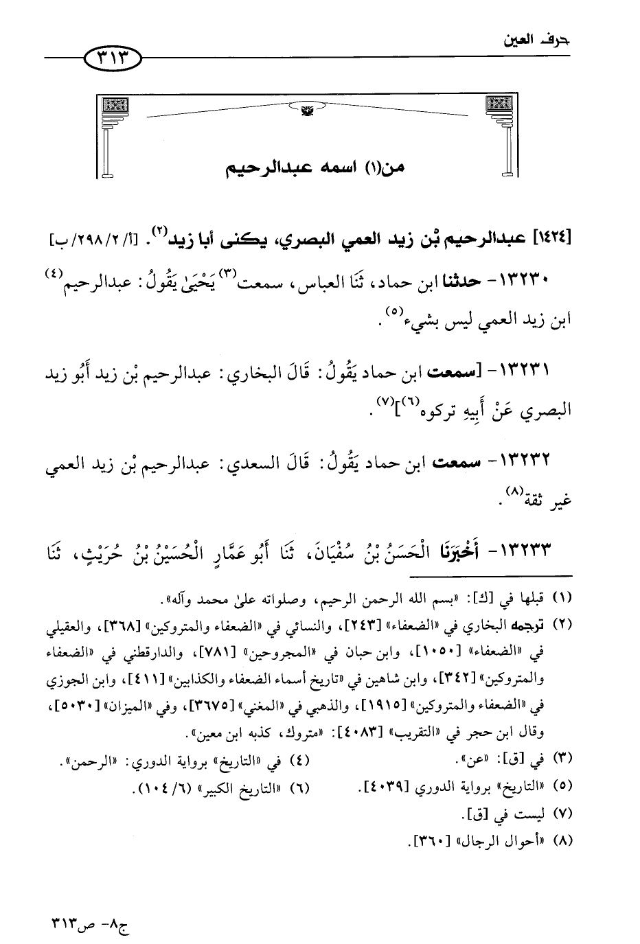 13232 - سمعتُ ابن حماد يقول: قال السعدي: عَبد الرحيم بن زيد العمي غير ثقة.