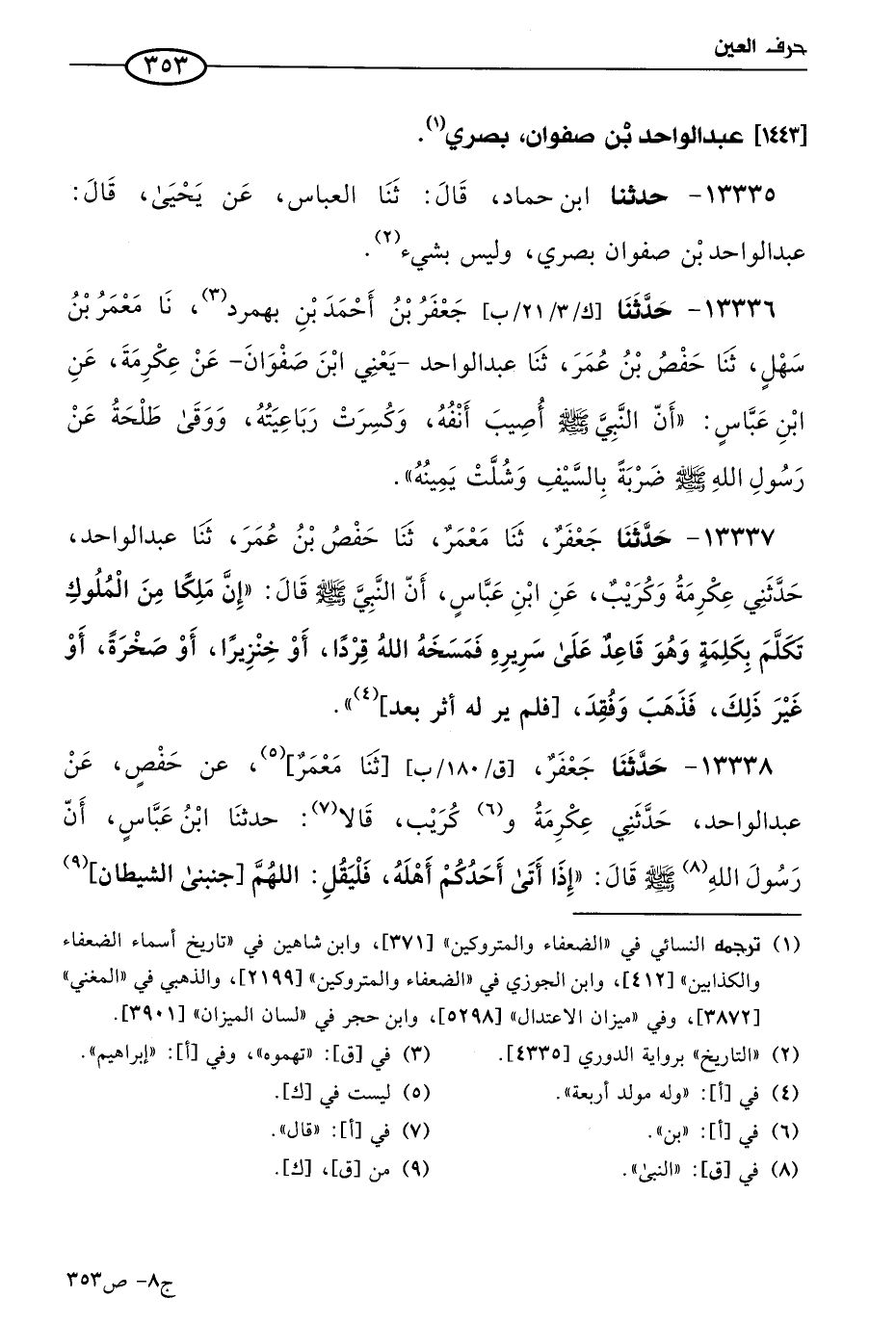 13335 - حَدثنا ابن حماد، قال: حَدثنا العباس، عن يَحيى، قال: عَبد الواحد بن صفوان بصري وليس بشَيءٍ.