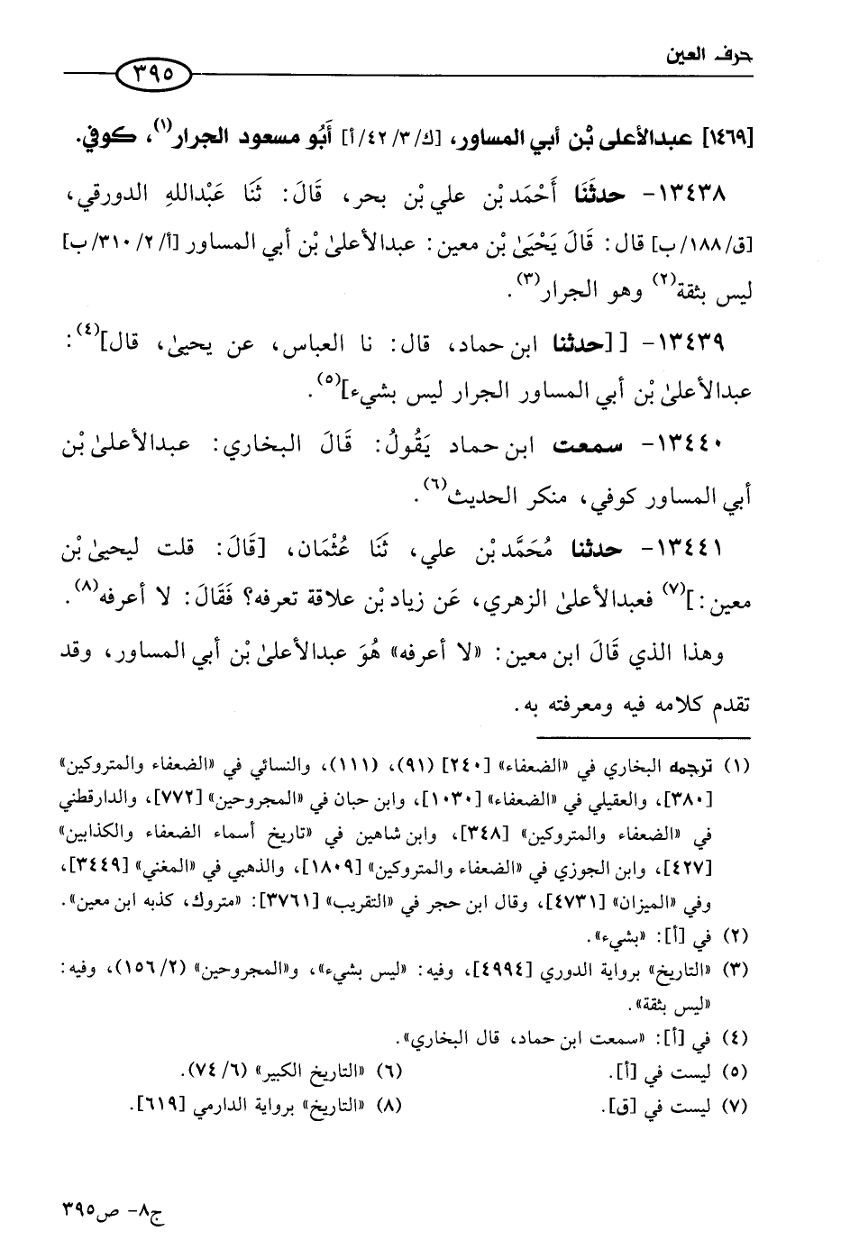 13439 - حَدثنا ابن حماد، قال: حَدثنا العباس، عن يَحيى قال: عَبد الأعلى بن أبي المساور الجرار ليس بشَيءٍ.