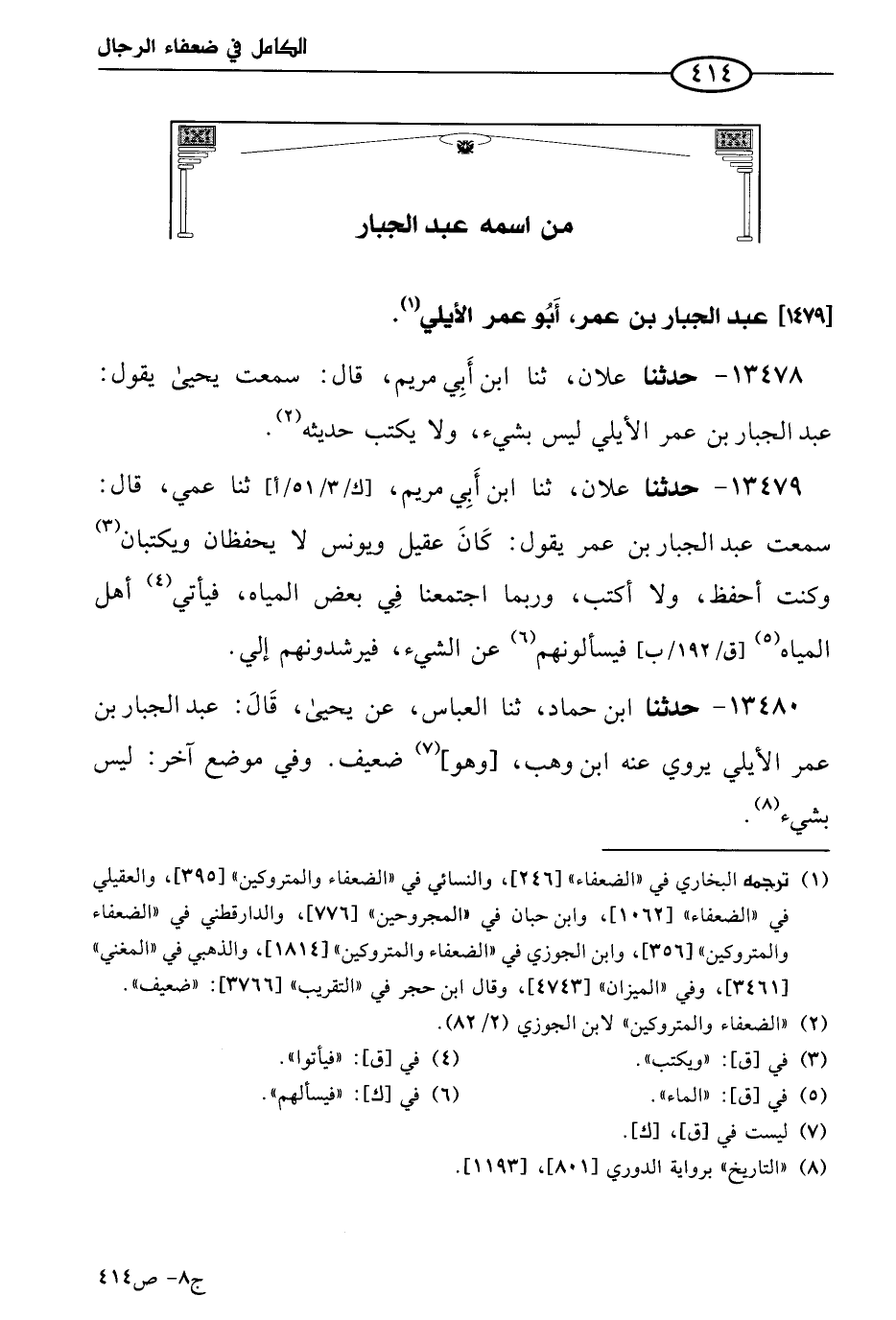 كتاب الكامل في ضعفاء الرجال لابن عدي - الرشد (اسم الجزء: 8)