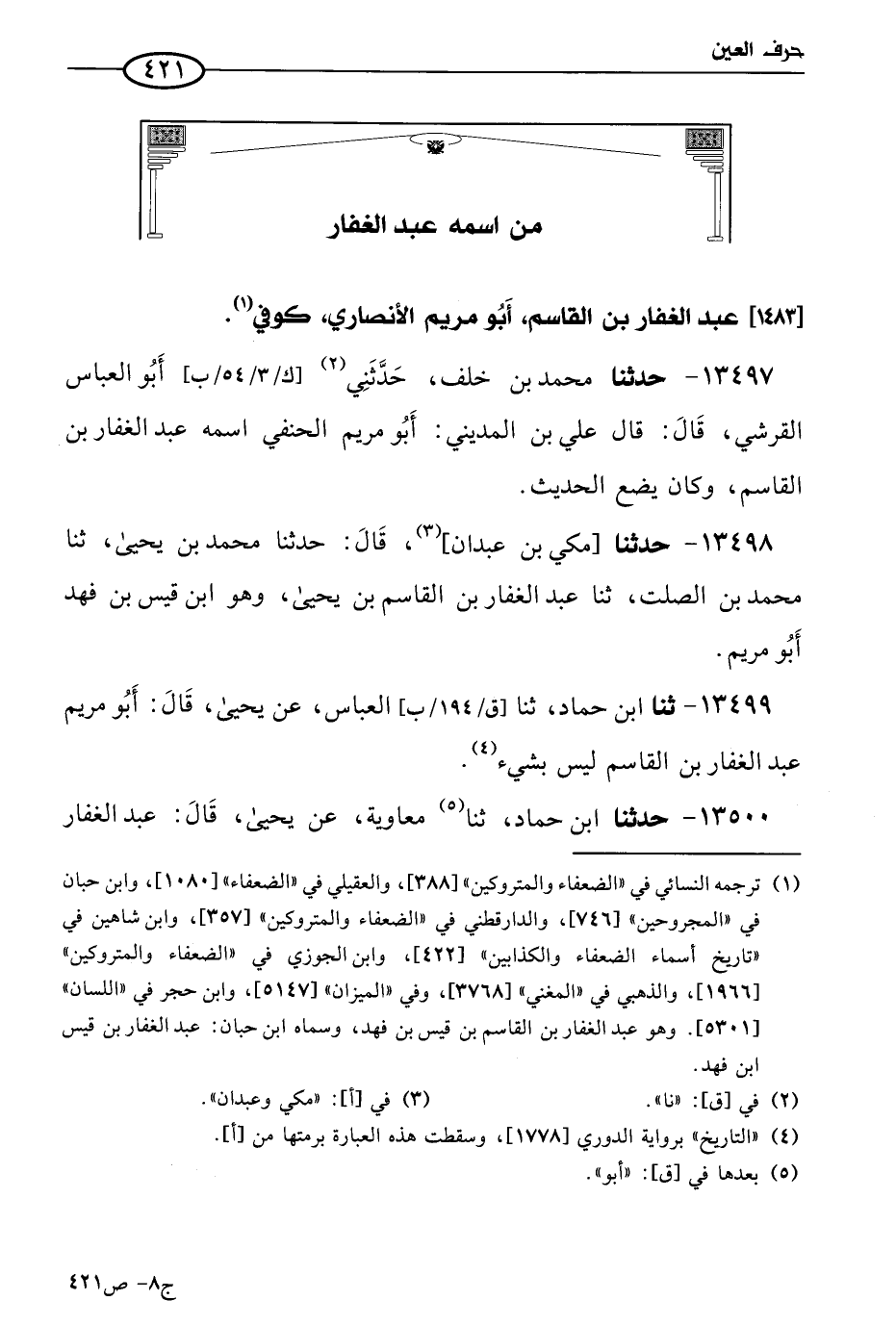13498 - حَدثنا مكي بن عبدان، قال: حَدثنا مُحمد بن يَحيى، حَدثنا مُحمد بن الصلت، حَدثنا عَبد الغفار بن القاسم بن يَحيى، وهو ابن قيس بن فهد أَبو مريم.