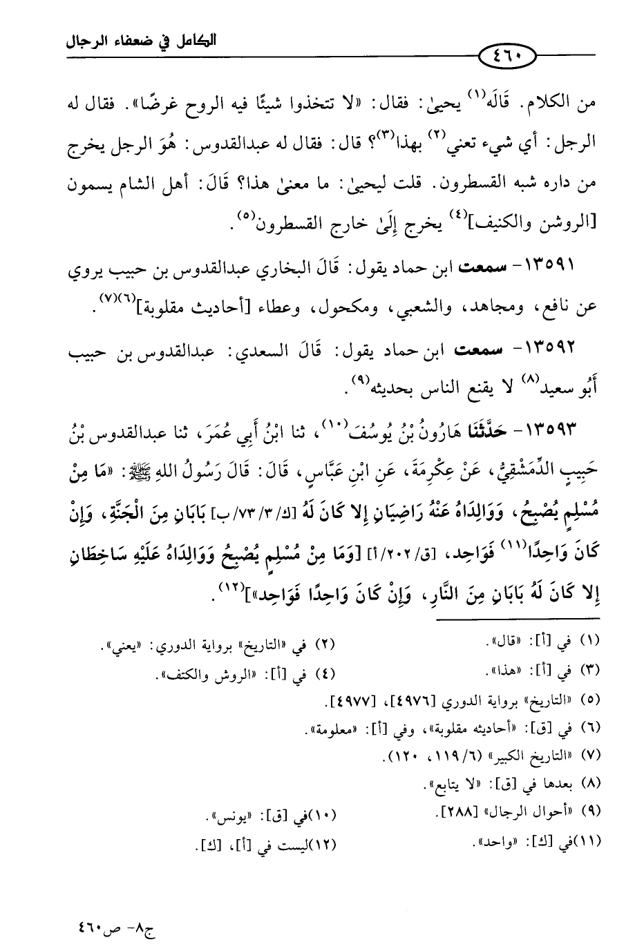 13592 - سمعتُ ابن حماد يقول: قال السعدي: عَبد القدوس بن حبيب أَبو سعيد لا يتابع، لا يقنع الناس بحديثه.