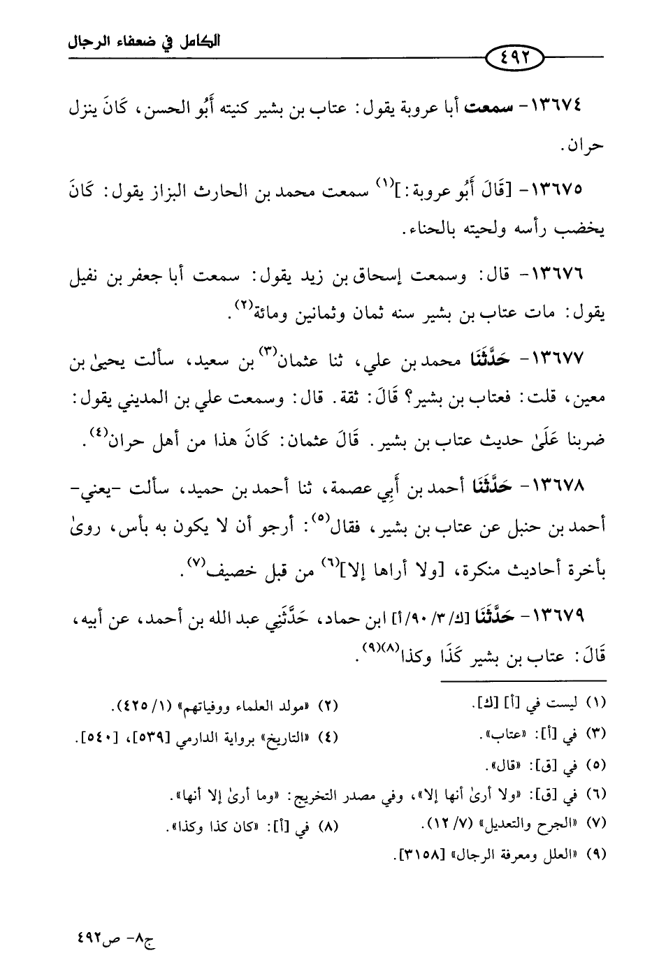 كتاب الكامل في ضعفاء الرجال لابن عدي - الرشد (اسم الجزء: 8)