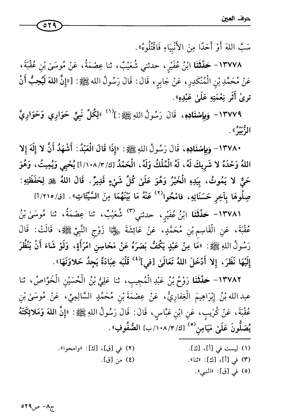 13778 - حَدثنا ابن عفير، حَدثني شُعَيب، حَدثنا عصمة، عن موسى بن عقبة، عن مُحمد بن المنكدر، عن جابر، قال: قال رسول الله صَلى الله عَليه وسَلم: إِنّ الله ليحب أن تُرَى أثر نعمته على عبده.