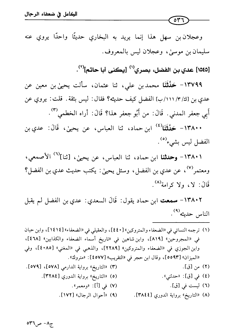 13802 - سمعتُ ابن حماد يقول: قال السعدي: عدي بن الفضل لم يقبل الناس حديثه.