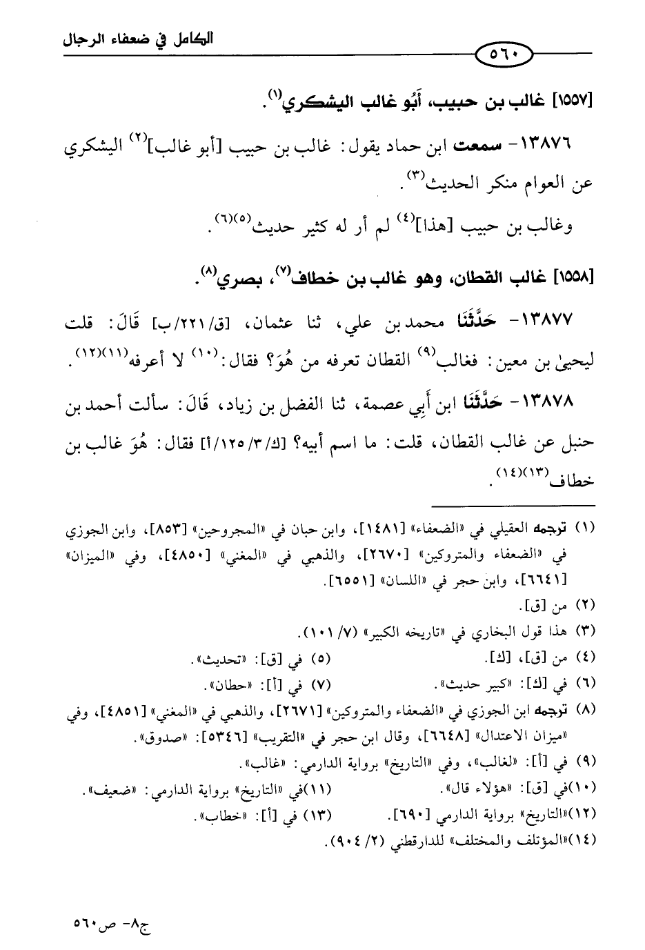 13877 - حَدثنا مُحمد بن علي، حَدثنا عثمان، قال: قلتُ ليحيى بن مَعين: فغالب القطان، تعرفه من هو؟ فقال: لا أعرفه.