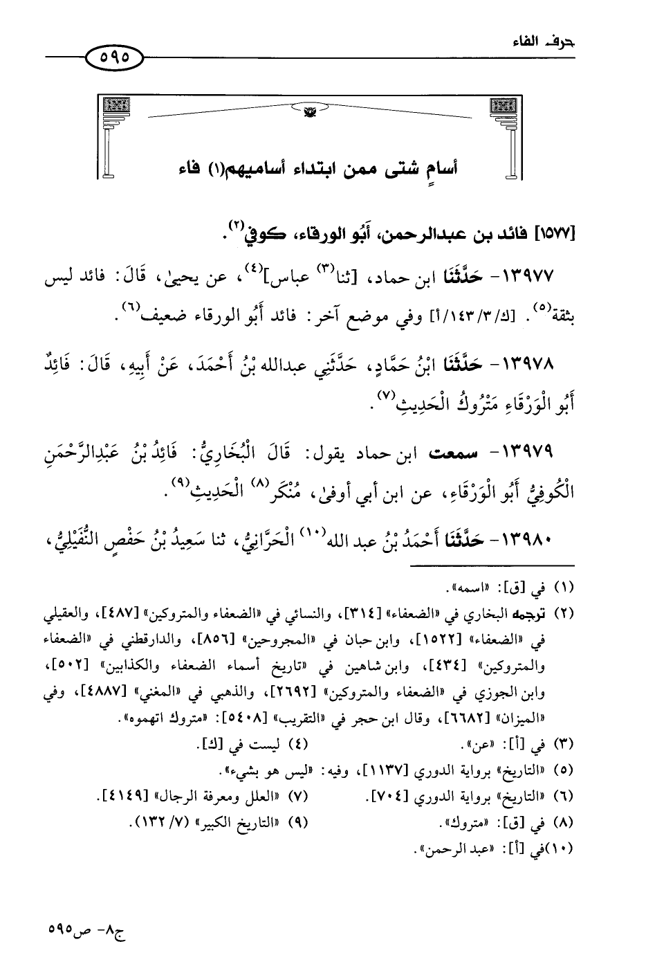 13978 - حَدثنا ابن حماد، حَدَّثني عَبد الله بن أحمد، عن أبيه، قال: فائد أَبو الورقاء متروك الحديث.