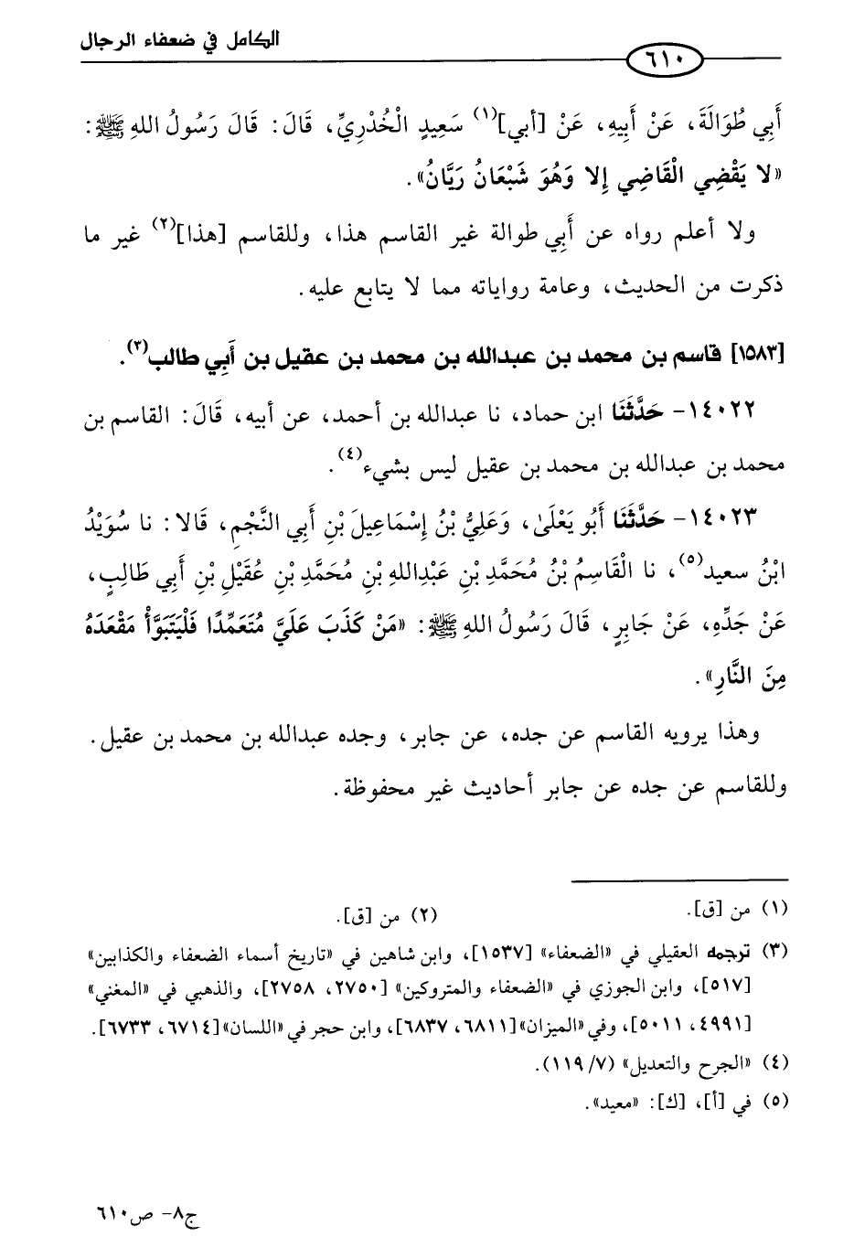 [1583] قاسم بن مُحمد بن عَبد الله بن مُحمد بن عَقِيل بن أبي طالب.