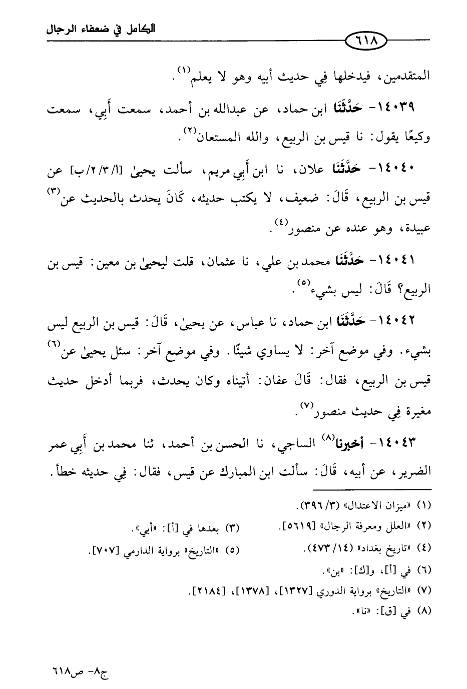 كتاب الكامل في ضعفاء الرجال لابن عدي - الرشد (اسم الجزء: 8)
