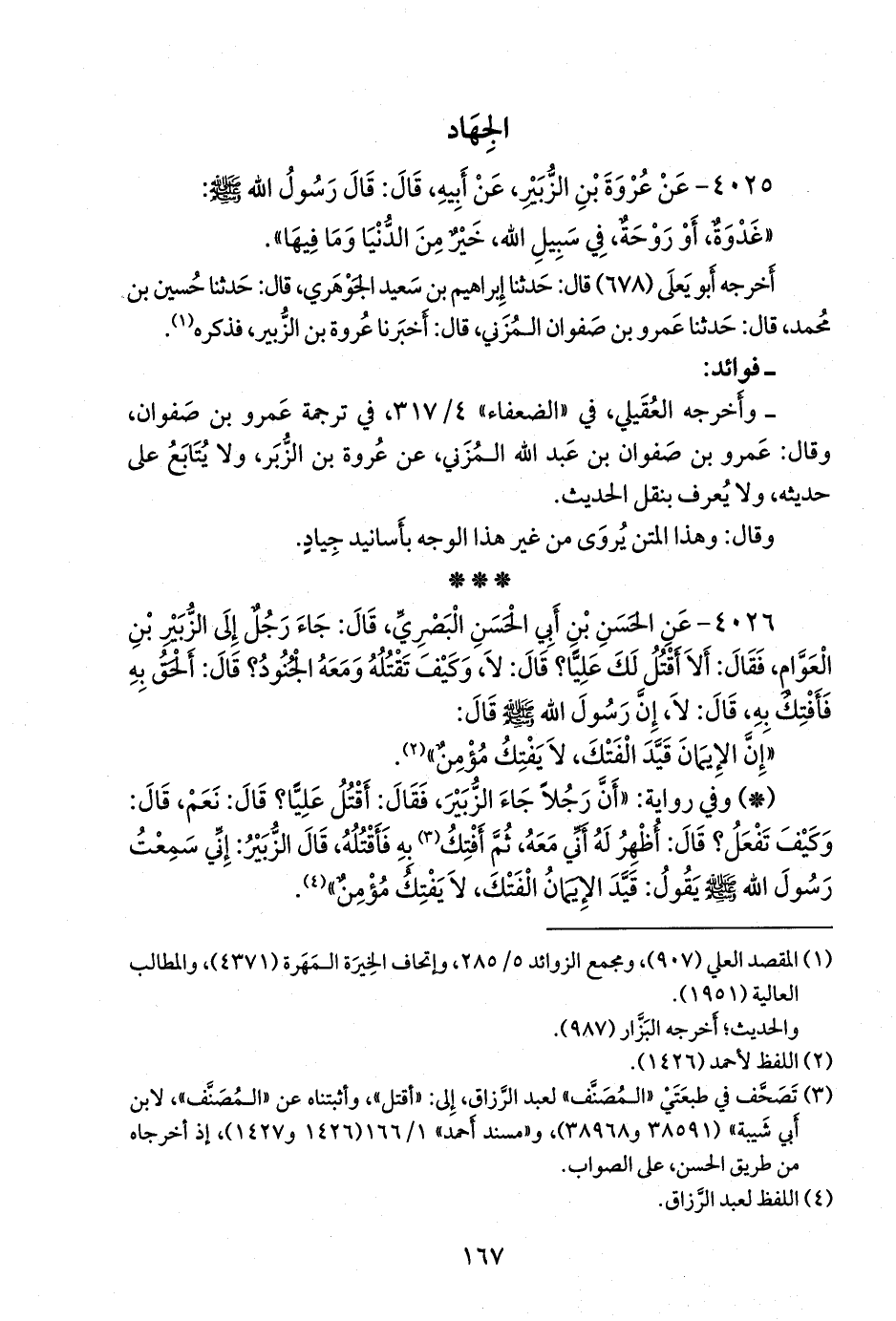 ٤٠٢٥ - عن عروة بن الزبير، عن أبيه، قال: قال رسول الله صَلى الله عَليه وسَلم: