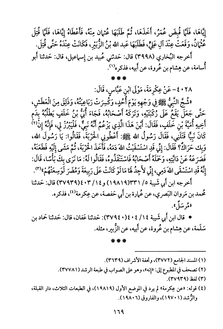 - قال ابن أبي شيبة (٣٧٩٤٠): حدثنا عفان، قال: حدثنا حماد بن سلمة، عن هشام بن عروة، عن أبيه، عن الزبير، مثله.