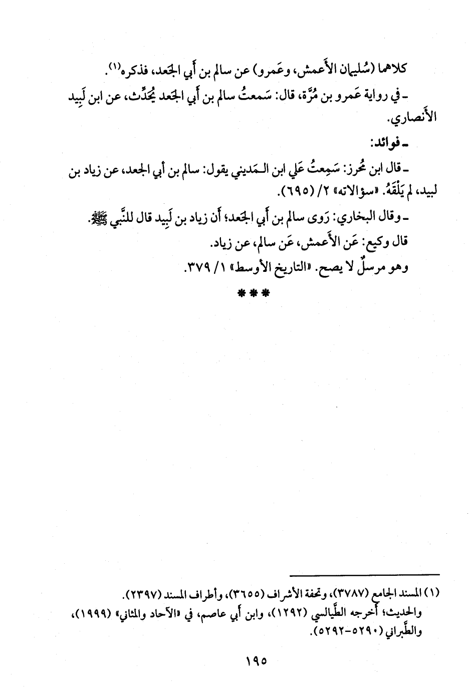 - وقال البخاري: روى سالم بن أبي الجعد؛ أن زياد بن لبيد قال للنبي صَلى الله عَليه وسَلم.