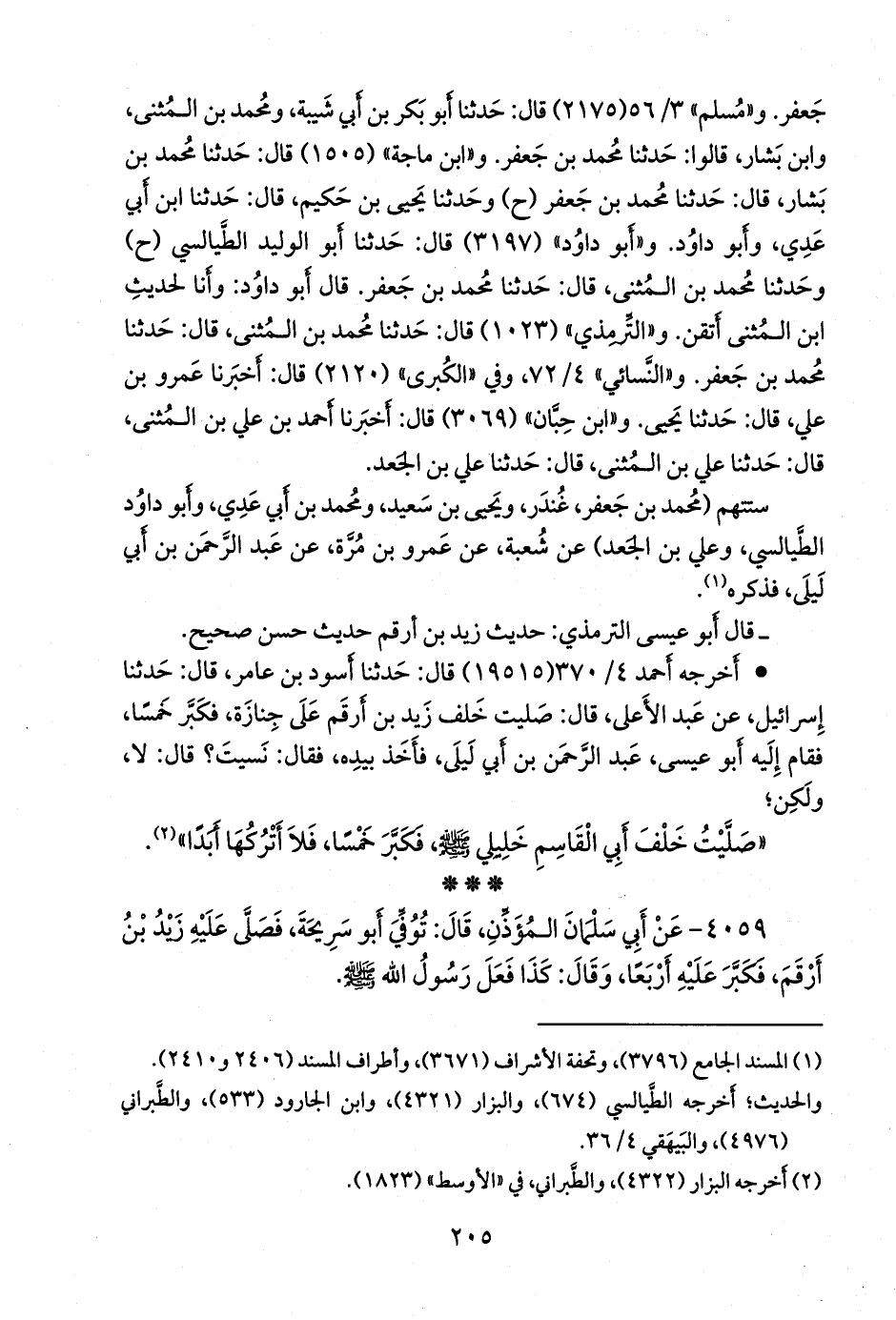 ٤٠٥٩ - عن أبي سلمان المؤذن، قال: توفي أَبو سَرِيحة، فصلى عليه زيد بن أرقم، فكبر عليه أربعا، وقال: كذا فعل رسول الله صَلى الله عَليه وسَلم.