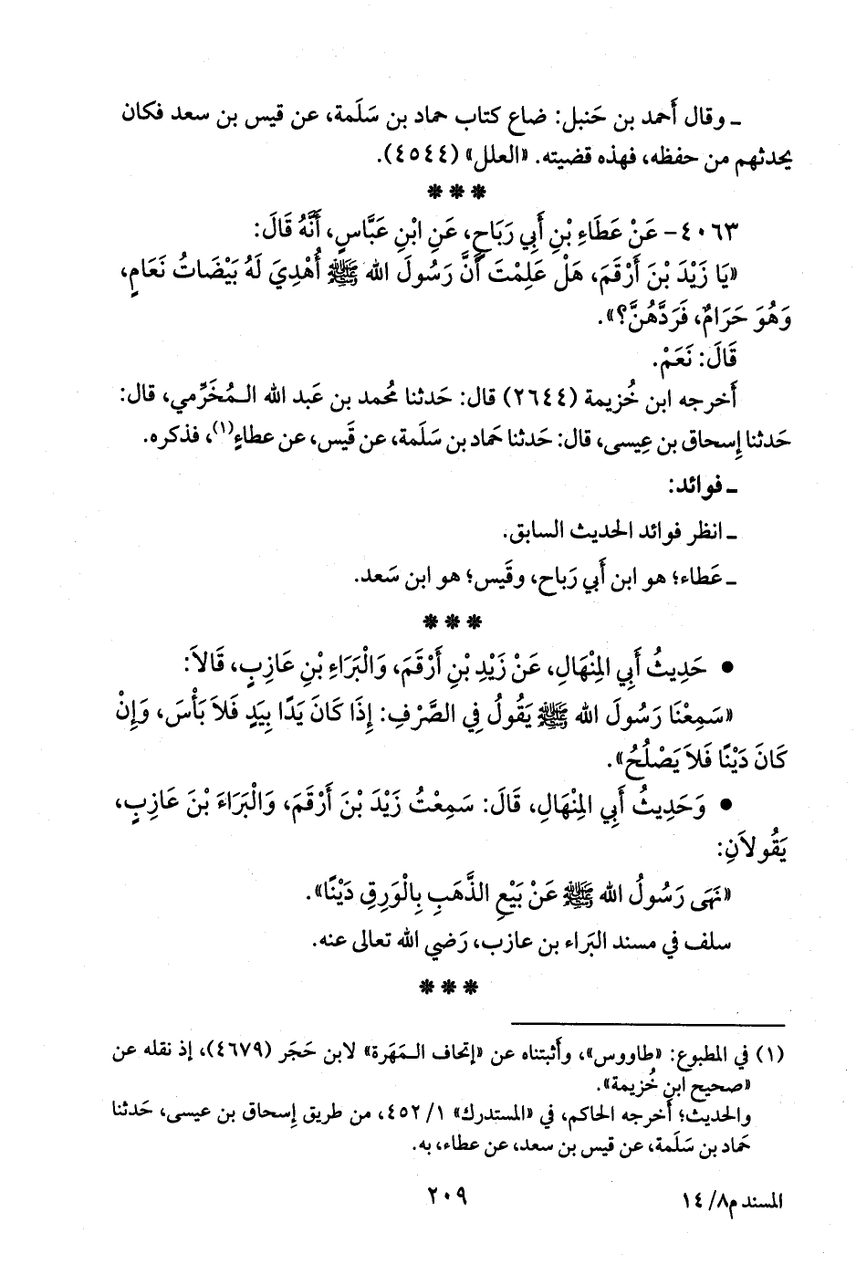 «يا زيد بن أرقم، هل علمت أن رسول الله صَلى الله عَليه وسَلم أهدي له بيضات نعام، وهو حرام، فردهن؟».