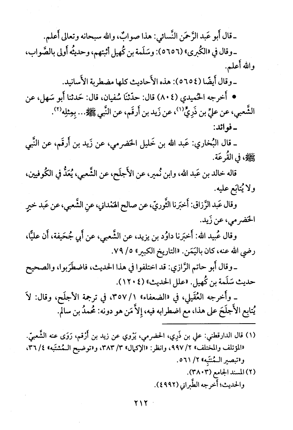 فقال ابن عسكر، وأَبو الأزهر: عن عبد الرزاق، عن الثوري، عن صالح الهمداني، عن الشعبي، عن عبد خير، عن زيد بن أرقم.