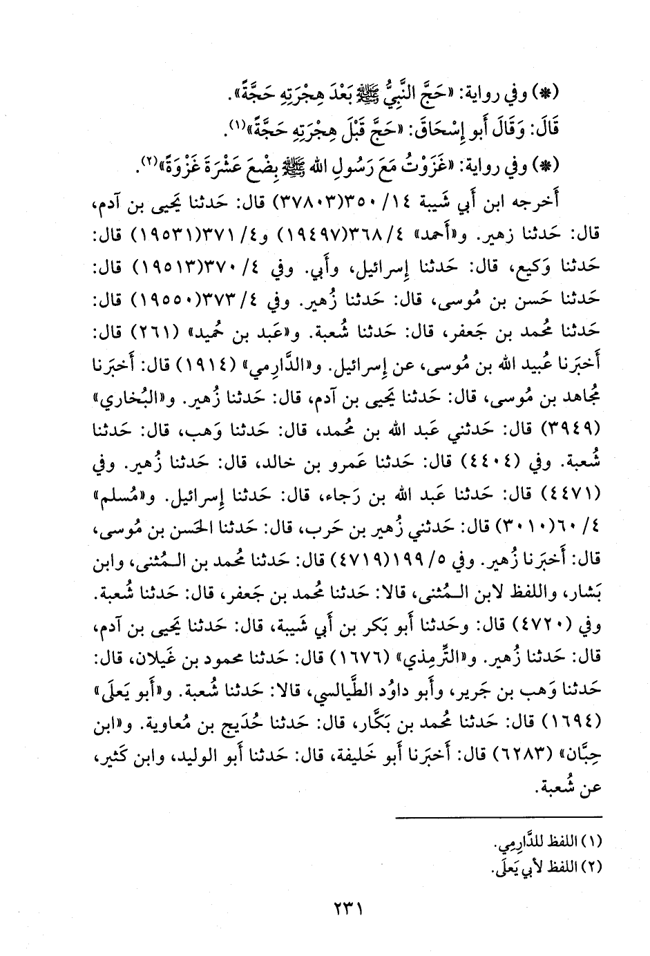 خمستهم (زهير بن معاوية، وإسرائيل بن يونس، والجراح بن مليح والد وكيع، وشعبة بن الحجاج، وحديج) عن أبي إسحاق السبيعي، فذكره (¬٢).