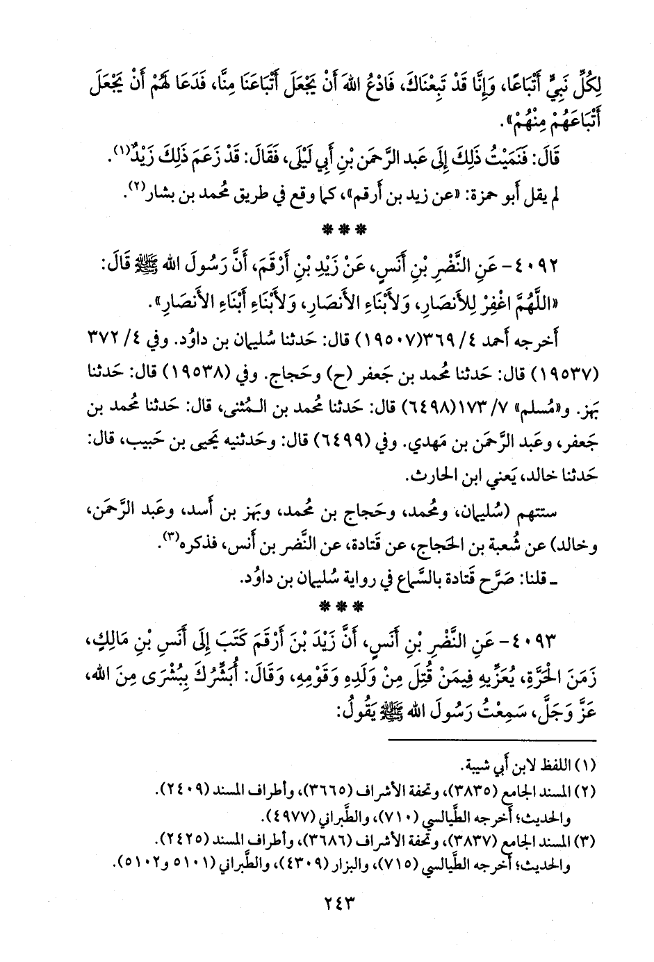 ٤٠٩٢ - عن النضر بن أنس، عن زيد بن أرقم، أن رسول الله صَلى الله عَليه وسَلم قال: