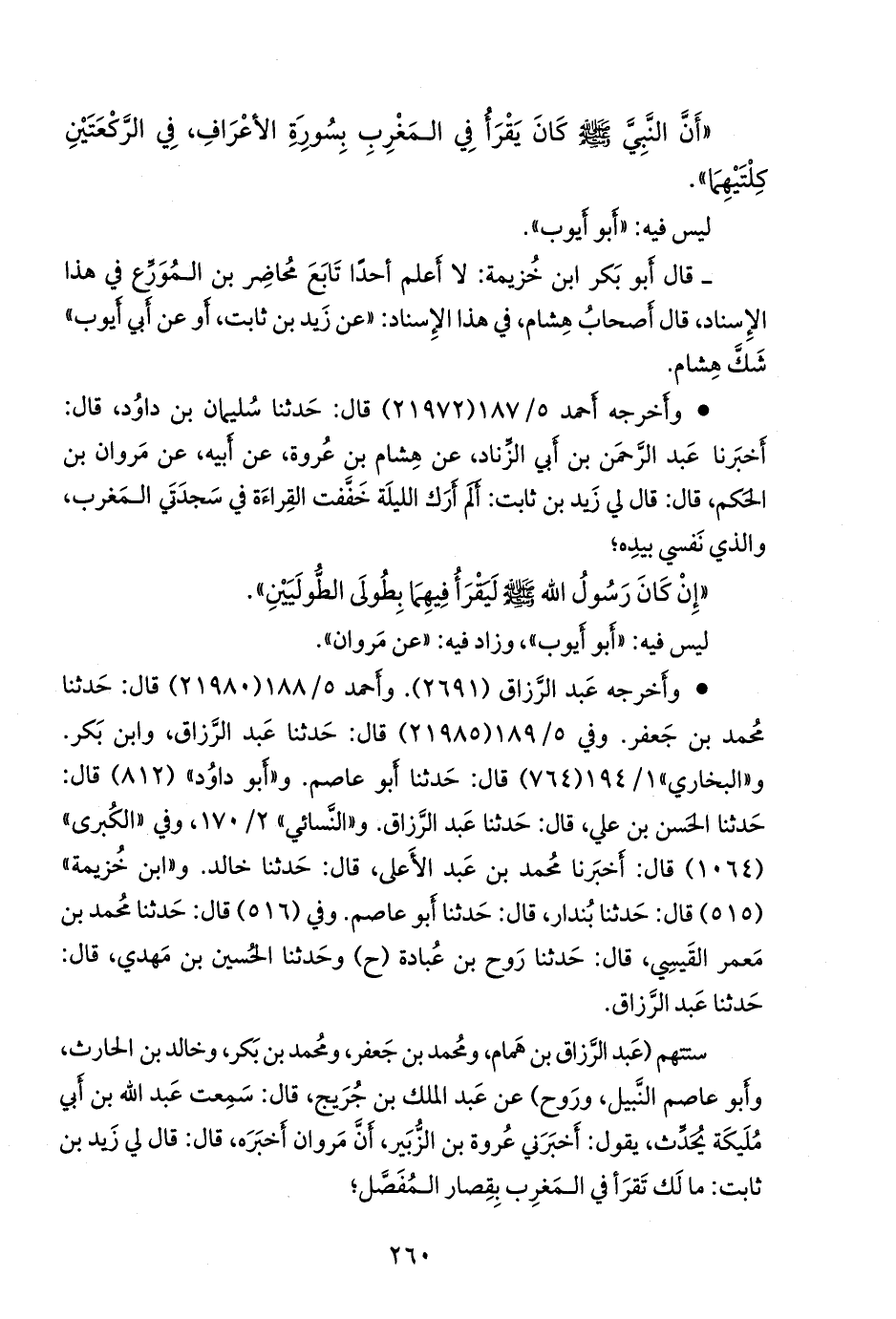 «ألم أرك الليلة خففت القراءة في سجدتى المغرب، والذي نفسي بيده، إن كان رسول الله صَلى الله عَليه وسَلم ليقرأ فيهما بطولى الطوليين».