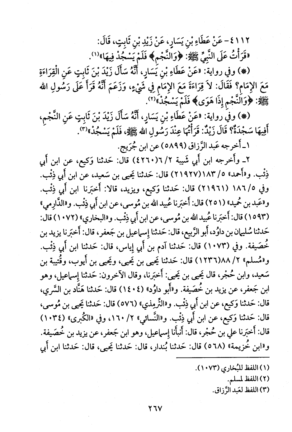 - وفي رواية: «عن عطاء بن يسار، أنه سأل زيد بن ثابت عن النجم، أفيها سجدة؟ قال زيد: قرأتها عند رسول الله صَلى الله عَليه وسَلم فلم يسجد» (¬٣).