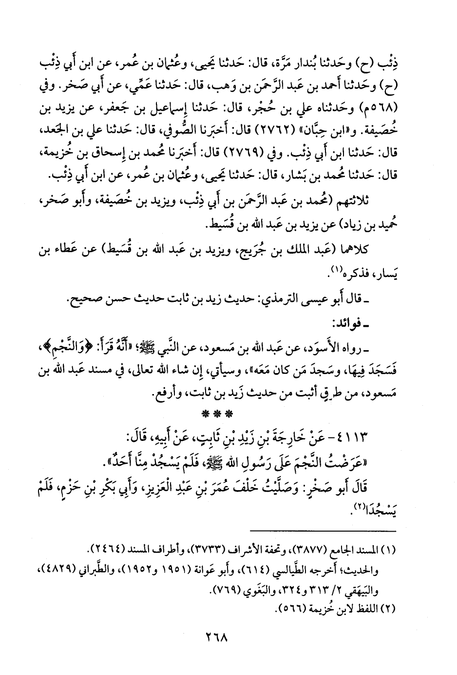 - رواه الأسود بن يزيد، عن عبد الله بن مسعود، عن النبي صَلى الله عَليه وسَلم؛ أنه قرأ النجم، فسجد بها، وسجد من كان معه، ويأتي في مسند عبد الله بن مسعود، برقم (٨٥٠٩).