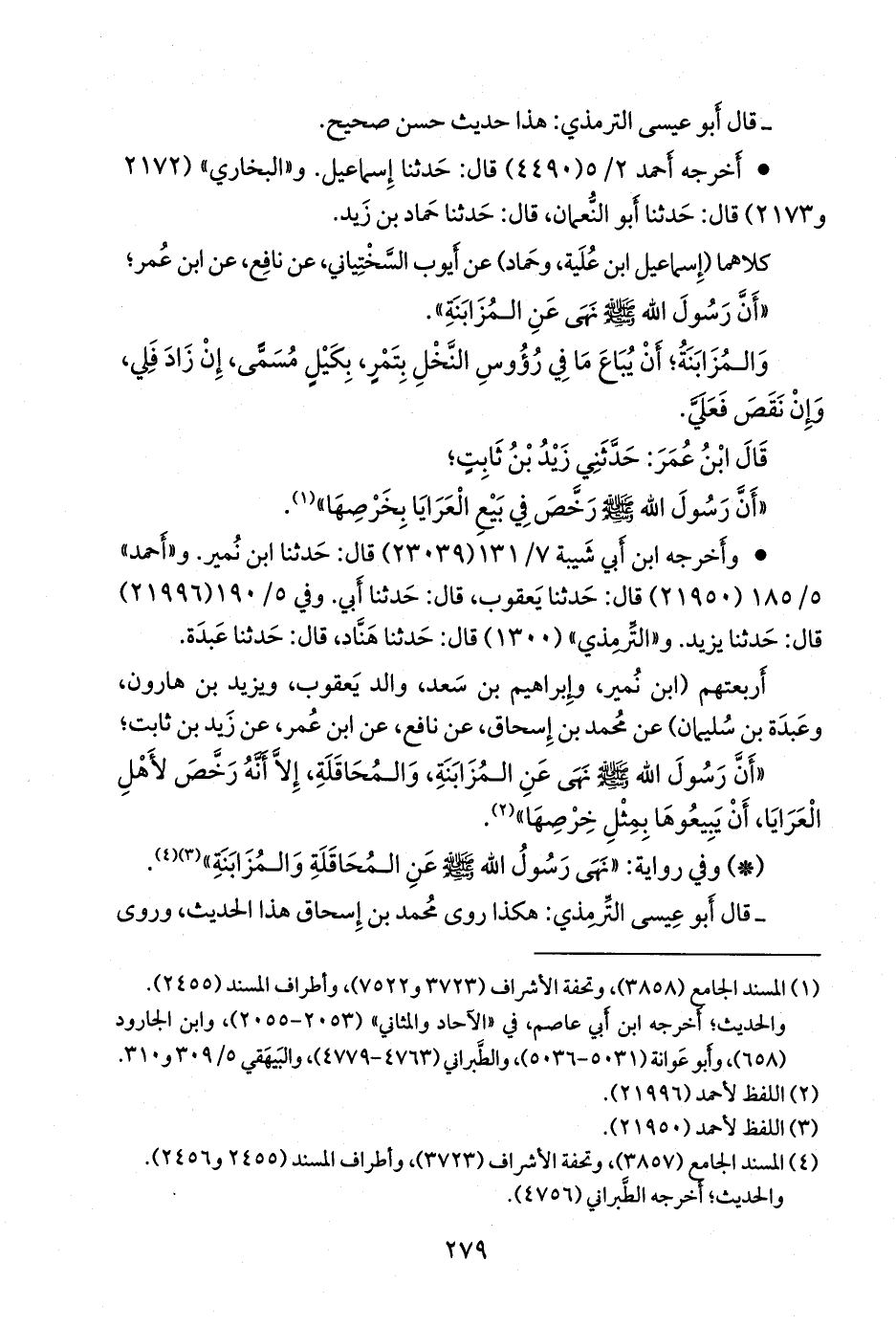 وفي (١٣٠٠ م) وبهذا الإسناد عن ابن عمر، عن زيد بن ثابت، عن النبي صَلى الله عَليه وسَلم؛ أنه رخص في العرايا، وهذا أصحُّ من حديث محمد بن إسحاق.