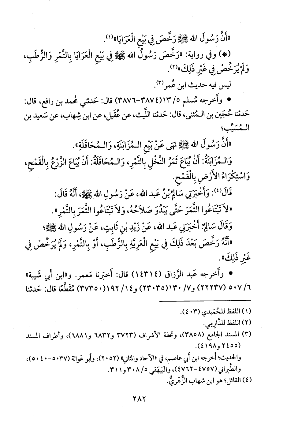 - وفي رواية: «رخص رسول الله صَلى الله عَليه وسَلم في بيع العرايا بالتمر والرطب، ولم يرخص في غير ذلك» (¬١).