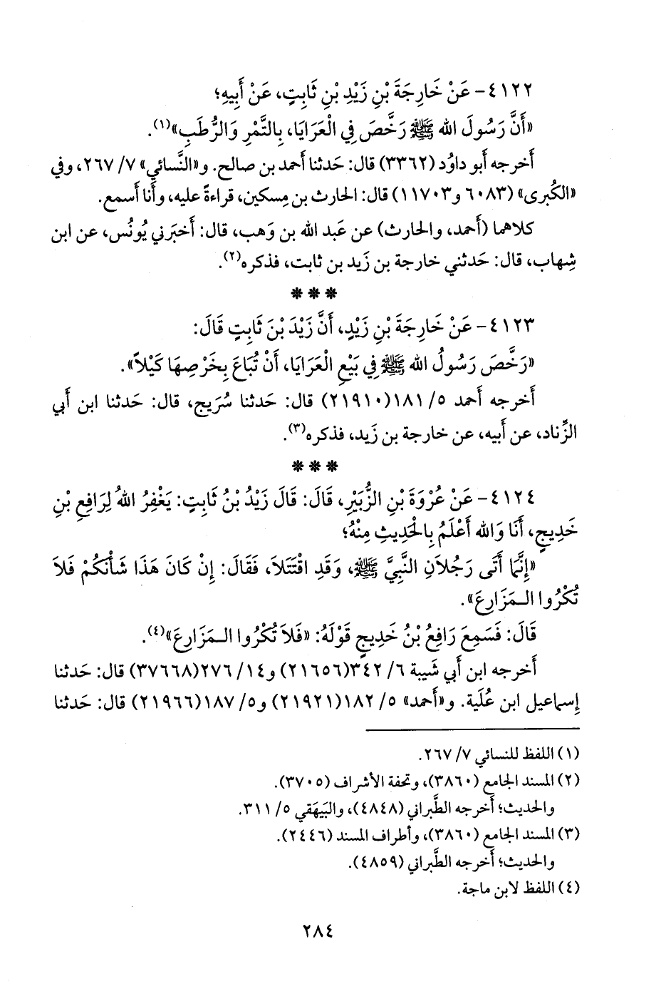٤١٢٢ - عن خارجة بن زيد بن ثابت، عن أبيه؛