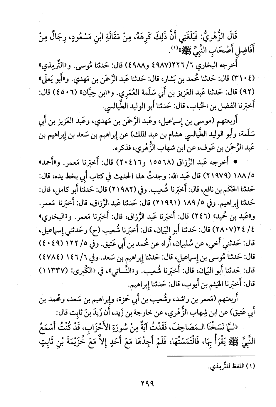 - قال التِّرمِذي: هذا حديثٌ حسنٌ صحيحٌ، وهو حديث الزُّهْري، ولا نعرفه إلا من حديثه.