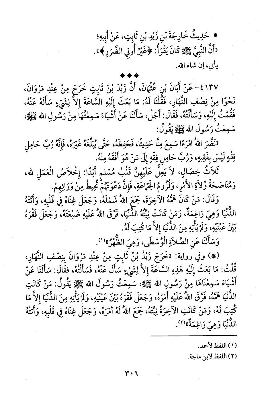 • حديث خارجة بن زيد بن ثابت، عن أبيه؛