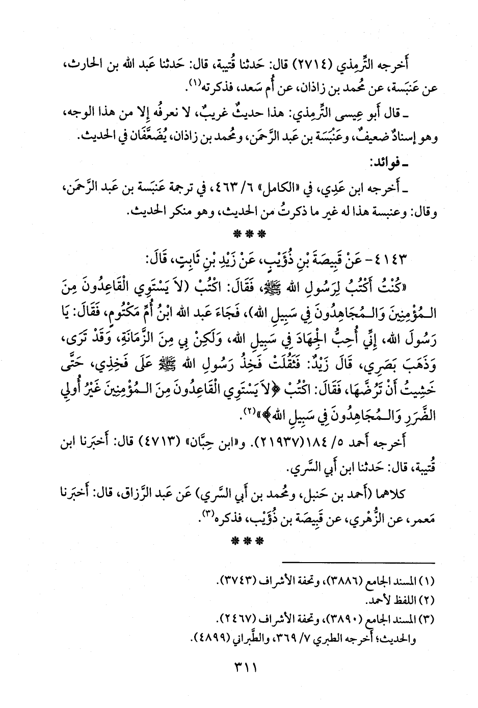 ٤١٤٣ - عن قَبيصَة بن ذؤيب، عن زيد بن ثابت، قال: