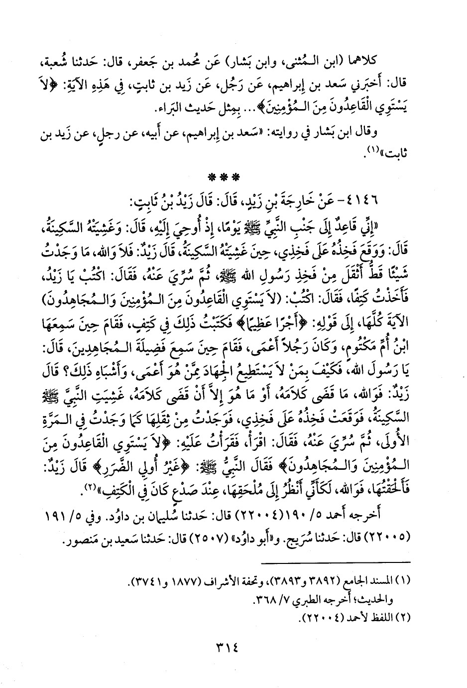 ٤١٤٦ - عن خارجة بن زيد، قال: قال زيد بن ثابت: