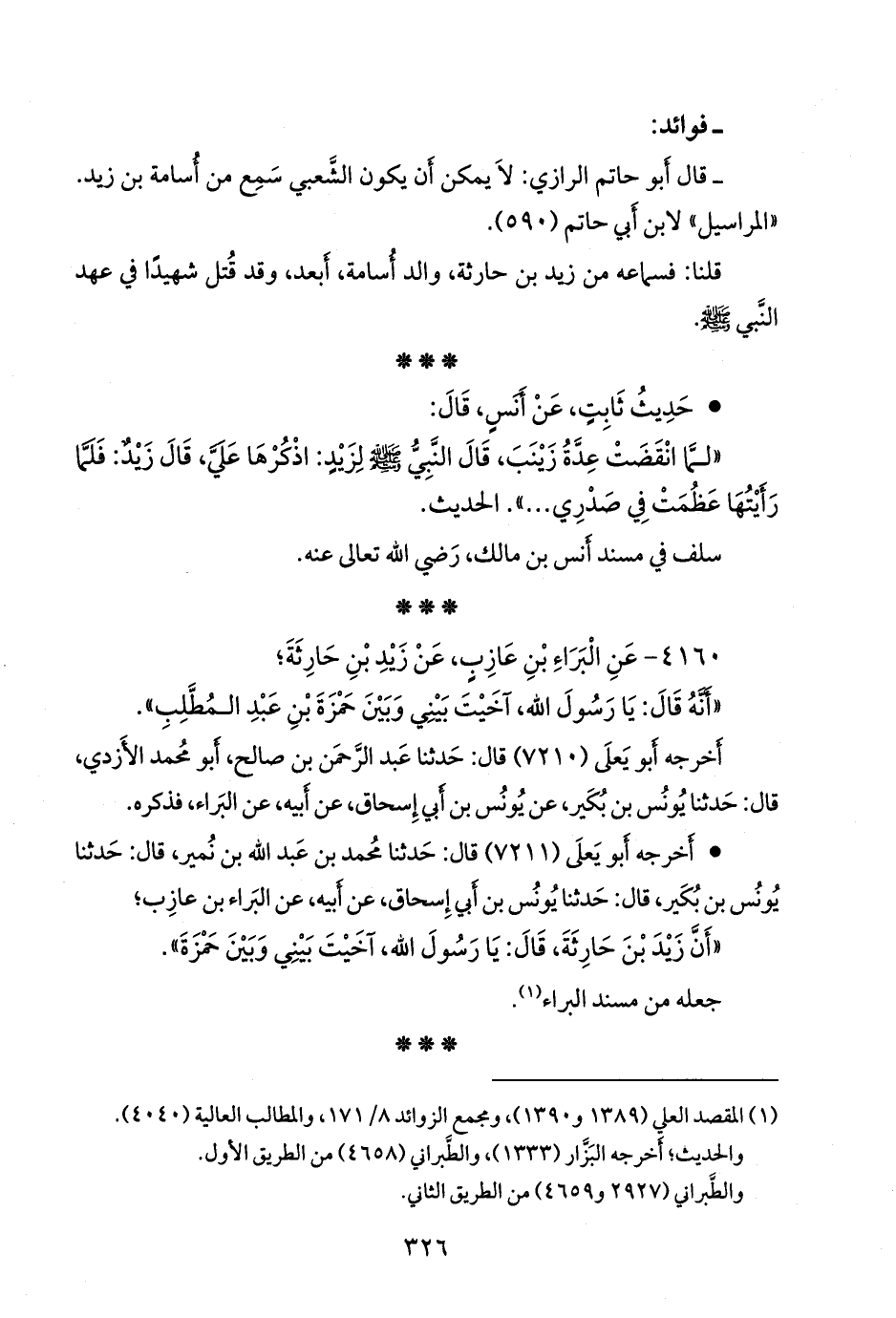 «أن زيد بن حارثة، قال: يا رسول الله، آخيت بيني وبين حمزة».