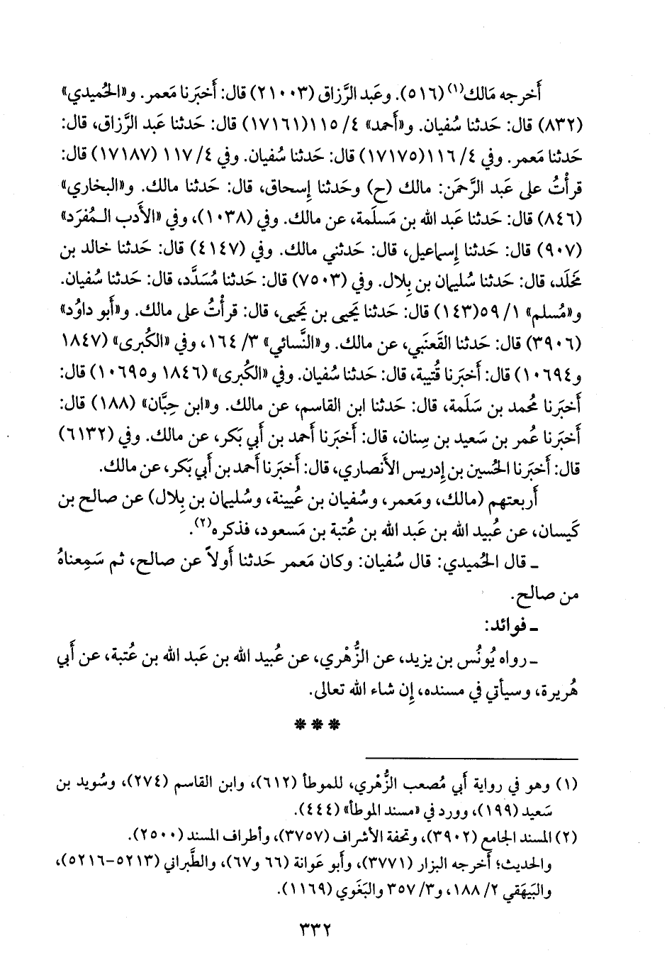 أربعتهم (مالك، ومعمر، وسفيان بن عُيينة، وسليمان بن بلال) عن صالح بن كيسان، عن عُبيد الله بن عبد الله بن عُتبة بن مسعود، فذكره (¬٢).